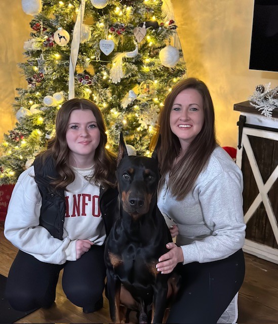 I’m Samantha Whited, founder of Premier Dobermans and lifelong dog enthusiast, and beside me is my daughter Peyton, my right hand in everything from whelping puppies to greeting families on pick-up day.